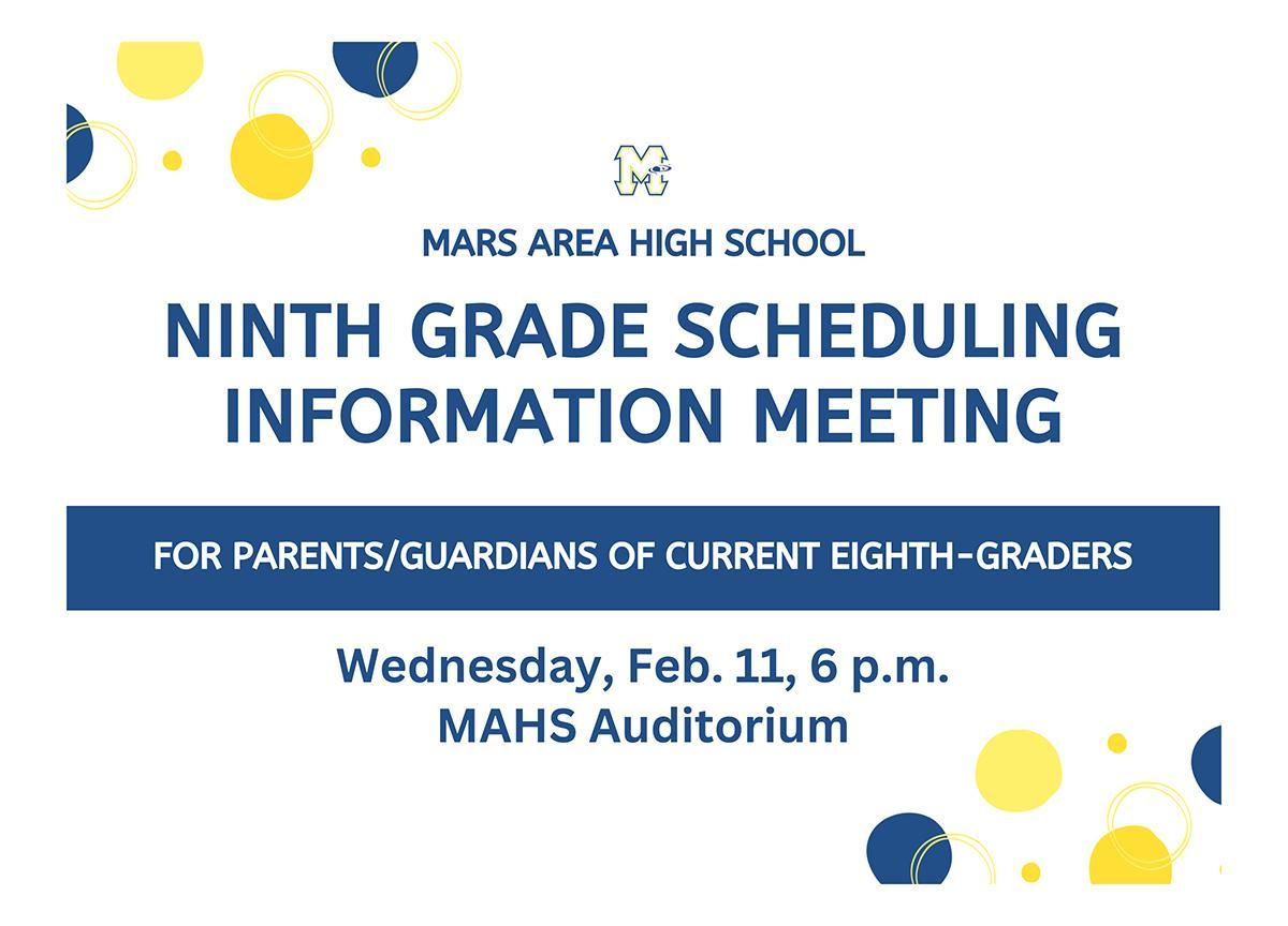 The following schedule will be implemented to schedule Eighth Grade students for Mars Area High School for the 2026-2027 School Year: