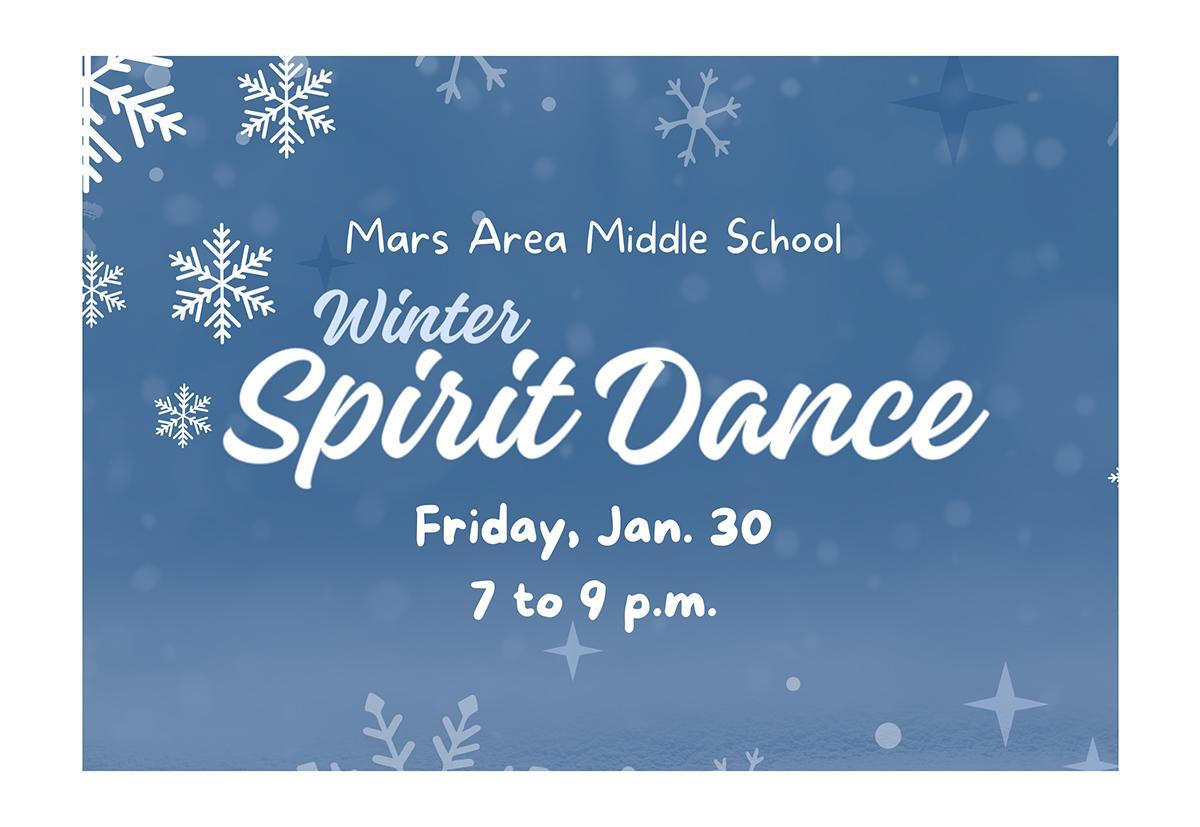 Mars Area Middle School will hold a Winter Spirit Dance from 7 to 9 p.m. on Friday, Jan. 30. (Doors open at 6:50 p.m.)